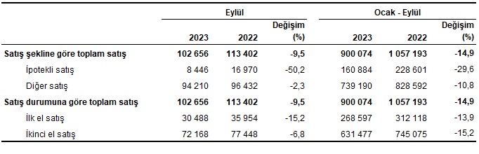 Konut satış sayısı, Eylül 2023
