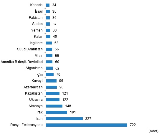 Eylül ayında Rusya Federasyonu vatandaşları Türkiye’den 722 konut satın aldı. Rusya Federasyonu vatandaşlarını sırasıyla 327 konut ile İran, 191 konut ile Irak ve 148 konut ile Almanya vatandaşları izledi.