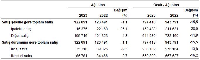 Satış şekline göre konut satışı, Ağustos 2023