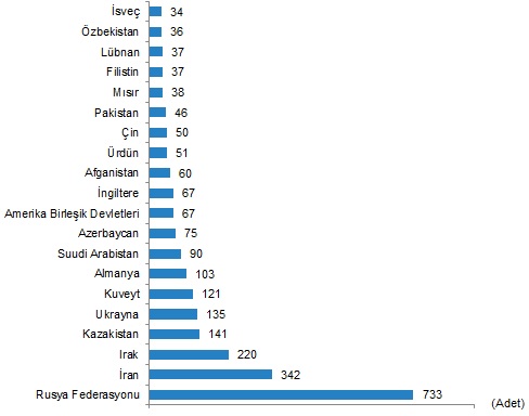 Ülke uyruklarına göre en çok konut satışı Rusya Federasyonu vatandaşlarına yapıldı.